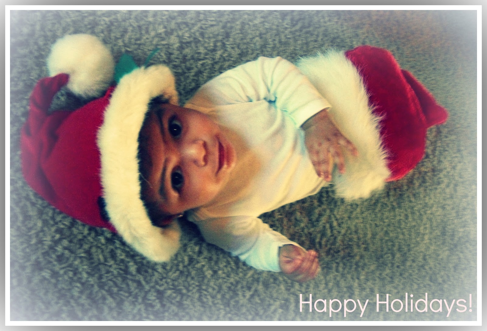 Second Photo: I found some Christmas tree picture advice on Pinterest, and decided to give it a-go. On top of the advice, I have her wearing a small santa hat, and she is sitting inside a red and white stocking. The advice I was given was to set small children off to the side of the tree with natural light coming from behind the tree. Tip: Daytime Christmas tree photos come out with better quality than night time photos. Editing at PicMonkey: I used the Cross Process option, and just added a simple black and white frame.